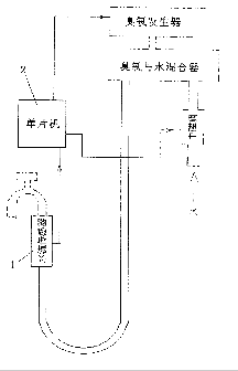 一种臭氧水消毒机水流控制装置,包括水流传感器和单片机,水流传感器安装在连接水龙头和臭氧水消毒机中的臭氧与水混合器出水口的管路上,单片机的输入端与水流传感器的输出端连接,其输出端分别与臭氧水消毒机中的臭氧发生器和进水控制阀连接。所述臭氧水消毒机是对现有臭氧水消毒机的一种改进,其结构包括臭氧发生器、臭氧与水混合器、进水控制阀和上述结构的水流控制装置。臭氧水消毒机水流控制装置实现了在臭氧水出口控制臭氧水消毒机水流的通断,设置了此种水流控制装置的臭氧水消毒机可直接与现有家用水龙头连接,使用者开启水龙头即可使用臭氧水,关闭水龙头即可关闭进水控制阀和臭氧发生器。