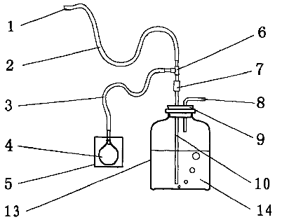 本实用新型涉及提供一种医疗用单向阀水封引流装置,包括在引流瓶的引流液进入管上连接一单向阀。单向阀通过三岔管连接引流管,三岔管的另一端通过测压分管连接安装在密封透明腔内的橡胶球。单向阀是一端有圆形狭口另一端有顶脊和过液孔内装浮球的管状结构。当引流液通过引流管流向引流液进入管时,引流液能够通过单向阀流入引流瓶。如果引流瓶内的引流液要回流到引流管内,单向阀将阻止引流液的回流。人体胸腔内的压力变化通过引流管经三岔管和测压分管到达橡胶球内。达到引流瓶内引流液不会吸入人体胸腔同时方便地观察人体胸腔内负压形成的目的。