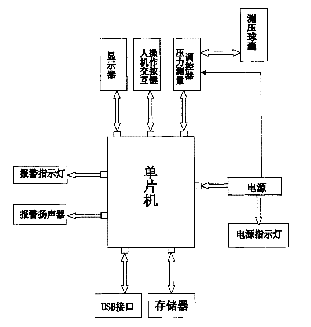一种导管球囊内压力自动调控仪,包括用于主控的单片机、压力测量调控器、人机交互操作按键、显示器和电源,压力测量调控器与单片机连接并通过管件与导管球囊的测压球囊连接,人机交互操作按键、显示器分别与单片机连接,电源与单片机和压力感应调控器连接,为它们提供工作电流。上述构件既可组装成几部分安装,也可集中于一机壳内安装。此种仪器可实时显示球囊内压力;根据设定的压力模式自动调节球囊内的压力,维持球囊内压力恒定在设定的范围;使球囊在设定的压力下维持一定的时间;可设定连续工作模式,自动在多种工作模式之间转换,不间断连续工作。因此,提高了临床操作的安全性和科研的精确性。