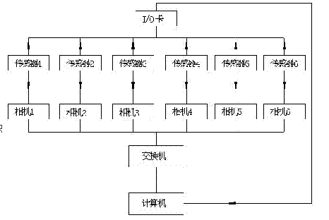 本发明公开了一种磁瓦表面缺陷检测系统,包括由多个相机组成的图像采集模块、图像传输和处理模块以及多个传感器组成的相机触发和计算机中断模块,所述图像采集模块中的相机用于获取磁瓦不同表面图像,所述图像传输和处理模块包括交换机和计算机,所述相机分别与交换机连接,交换机与计算机连接,所述相机触发和计算机中断模块中的传感器用于对磁瓦位置进行检测,并触发相机,所述多个相机与多个传感器对应连接,所述传感器通过I/O接口与计算机连接。本发明能够实现对磁瓦表面缺陷进行有效的在线识别检测和分类。