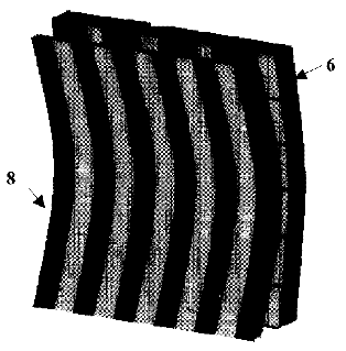 本发明公开了一种非平面光栅式3D自由立体显示屏,其特征是采用非平面2D显示屏加装光栅构成,显示的立体场景不会因显示屏是曲面而变形,实现平面光栅式3D自由立体显示屏同样的立体场景显示效果。本发明采用一种投影变换方法实现平面光栅式3D自由立体显示屏的立体场景在非平面光栅式3D自由立体显示屏上不变形地显示出来。本发明的显示系统具有紧凑的特点,特别使更大更复杂的立体场景得到效果很好的完整显示,同时避开了拼接型光栅式3D自由立体显示屏的技术难度。本发明丰富了光栅式3D自由立体显示器的种类。