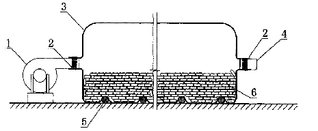 刚收获的花生果由于含水量大,同时由于外壳带泥必须淘洗,其含水量会更重,而用于贮存的花生果是不能用熏烤的办法干燥的,传统的方法都是晾晒干燥,但是,一旦遇上连绵秋雨,花生果会迅速霉烂,本发明提供一种花生管道式常温干燥器,在常温风机的出口上结扎塑料薄膜管,管中装入花生果,薄膜管的出口结扎在硬质出口管上,翻动棒横插于薄膜管与地面之间,此法不仅设备投资极低,操作简单易于控制,耗电极少,还能使干燥后花生果耐贮存。