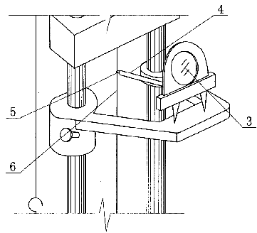 活动夹头是杨氏模量仪中最关键的部件之一,本发明提供一种无活动夹头杨氏模量仪,通过在光杠杆后足用磁力连接铲形稀土磁铁使待测钢丝与光杠杆后足依靠磁力结为一体,从而省去了活动夹头,此举使测量调节方便省时,消除了夹头与孔壁的摩擦,并减小了测量误差,还降低了测量仪的制造成本。