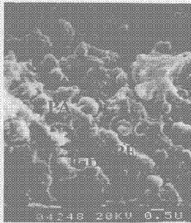 纳米磷灰石增强复合材料及其制备方法。复合材料的基本组成为纳米磷灰石类成分与至少一种医用高分子材料成分在共沸溶液体系中形成的复合物。纳米磷灰石类成分可以为纳米级的磷灰石或类骨磷灰石;医用高分子材料成分可以为聚酰胺类或非聚酰胺类高聚物材料中的至少一种。制备时,分别将纳米磷灰石类成分与分散剂的混合浆料,与由医用高分子材料和能与所说分散剂形成共沸体系且是该高分子材料良溶剂溶解得到的高分子材料溶液混合,在高于混合物料体系共沸点5℃至低于共沸点80℃温度范围内充分搅拌进行复合得到所说的复合材料。复合材料中磷灰石的含量及材料强度、亲疏水性、降解速率可根据不同类型组织、细胞附着的生长需要调控而获得更好的性能。