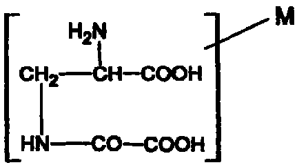 以β-草酰胺基-α-氨基丙酸为母体的化合物,结构如式所示,式中的M为一价、二价或三价的金属离子,或者C1- C6的含氮碱性化合物中的一种。该化合物与其母体化合物相比水溶性大为提高,除可被用于注射制剂的植被外,还可以用于制备相应抗肿瘤、降血糖及血液病药物或医学中间体。