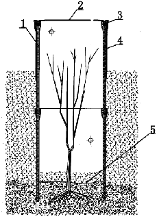 沙漠的治理是一道公认的难题,而治理沙漠最根本的途径是植树,但由于沙漠的地理环境和气候环境恶劣,而目前公知的各种植树法既费工又费水,其成活率却不高,所以难以形成良性循环。本发明提供一种沉井式沙漠植树法,利用沙漠植树专用沉井,为幼树的栽植、成活营造了最理想的环境,此法不仅省工省水,还可使树苗的成活率提高到90%以上。